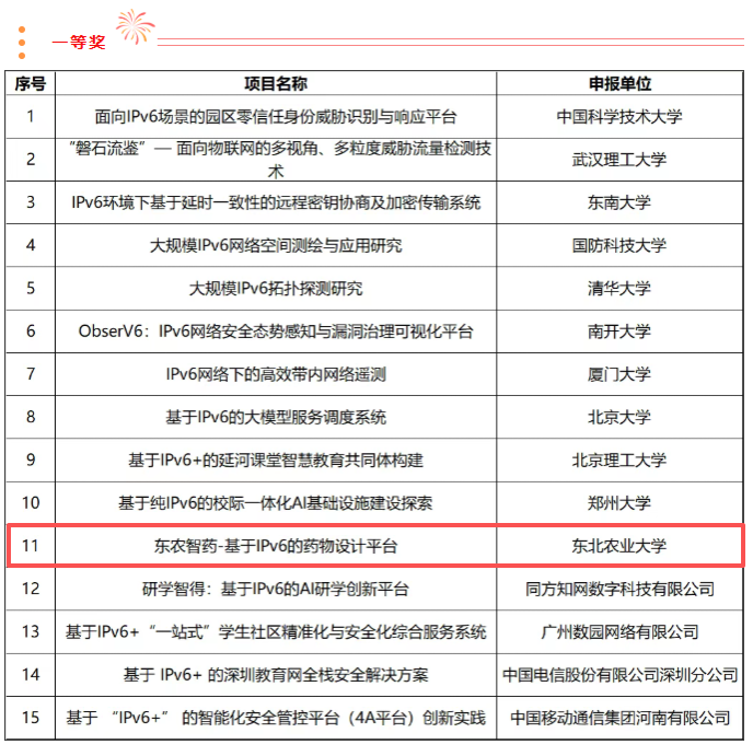 近日,第三届IPv6技术应用创新大赛科教赛道暨第八届下一代互联网技术创新大赛决赛在北京落下帷幕。由东北农业大学现代教育技术中心高级工程师周长建作为指导教师,工程学院硕士研究生刘禹彤,电气与信息学院本科生邱玥曦、佟佳树申报的项目《东农智药—基于IPv6的药物设计平台》荣获一等奖,实现该项赛事东北地区高校一等奖零的突破,这也是东北农业大学连续三届在此类赛事中获奖,总获奖数量达5项,位居全省第一。
