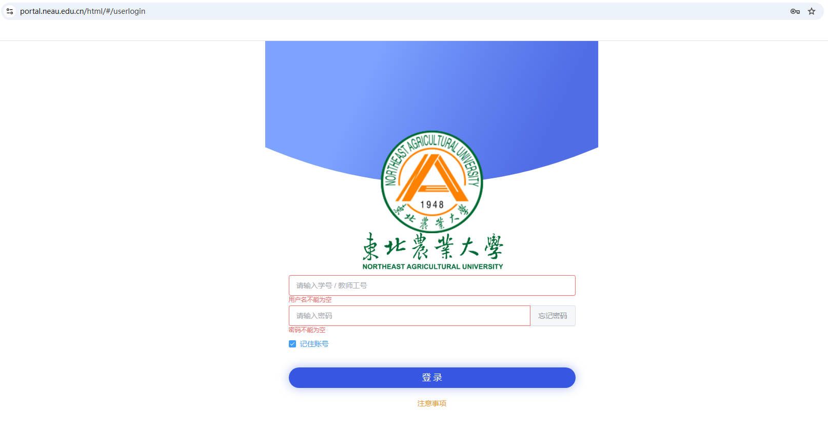 1、在校内第一次上网的老师,进入:https://portal.neau.edu.cn/html/#/userlogin